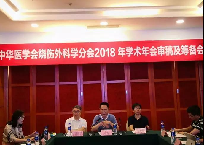 一、吴军主任委员宣布中华医学会烧伤外科学分会第十届委员会第三次常委会暨2018学术年会审稿及筹备会开始,并介绍参会人员与会议议程。