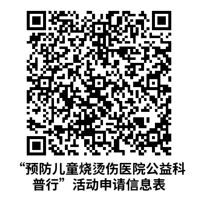 中华医学会烧伤外科学分会和中国社会福利基金会烧烫伤关爱公益基金共同发起“预防儿童烧烫伤医院公益科普行”,该活动积极响应《健康中国行动》的号召、联动医院和医务工作者以实际行动践行医者护卫民众健康的使命,发挥专业优势将科学的烧烫伤预防和急救知识传播给公众,通过医院的爱心行动影响一个地区、一个城市,引起更多人关注和重视,为降低中国儿童烧烫伤发生率贡献力量!